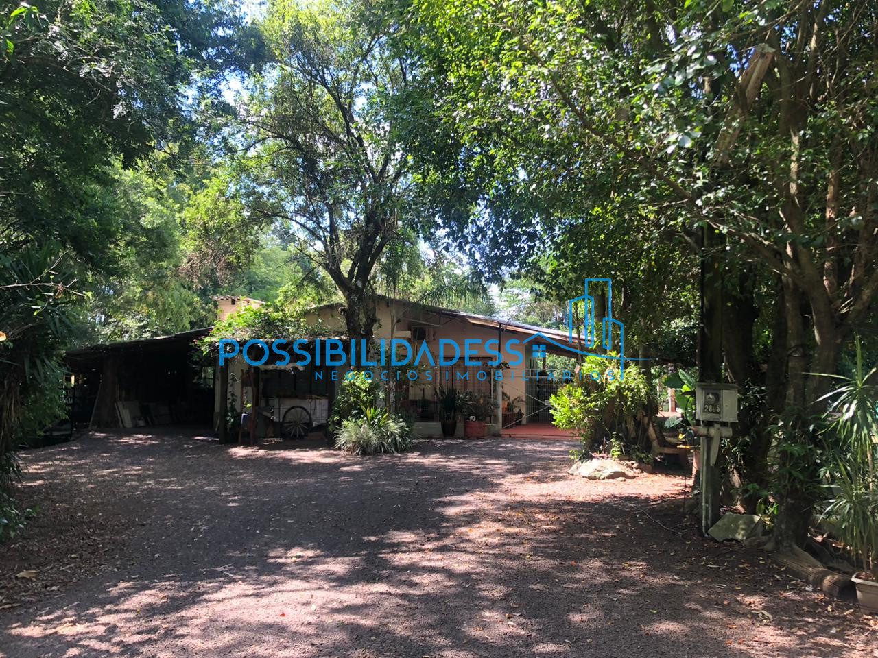 A chácara dispõe de três moradias: uma principal, com 212 m² de área construída, e duas unidades anexas, medindo 48 m² e 15 m².